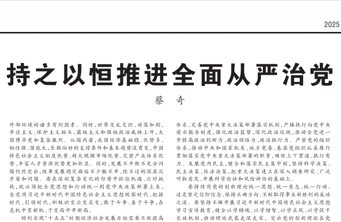 持之以恒推进全面从严治党