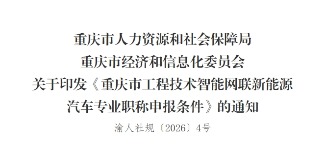 重庆市人力资源和社会保障局 重庆市经济和信息化委员会 关于印发《重庆市工程技术智能网联新能源 汽车专业职称申报条件》的通知